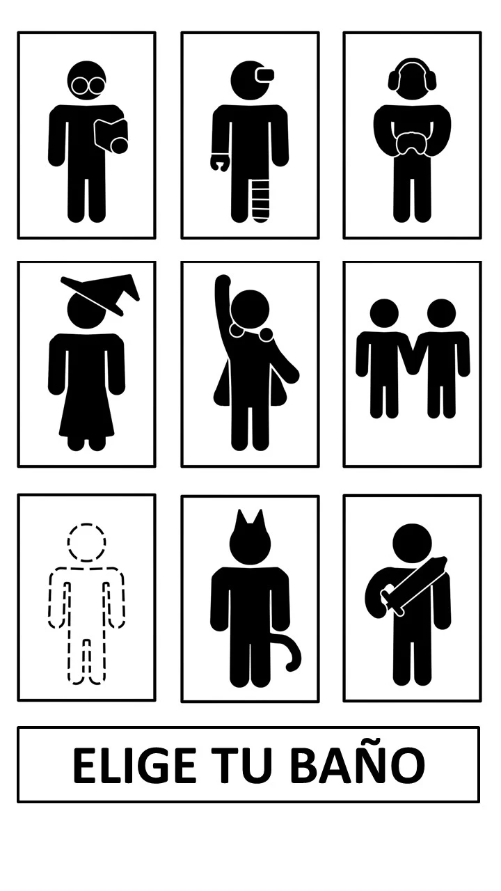 “Comentario paródico sobre la separación de baños por género”.